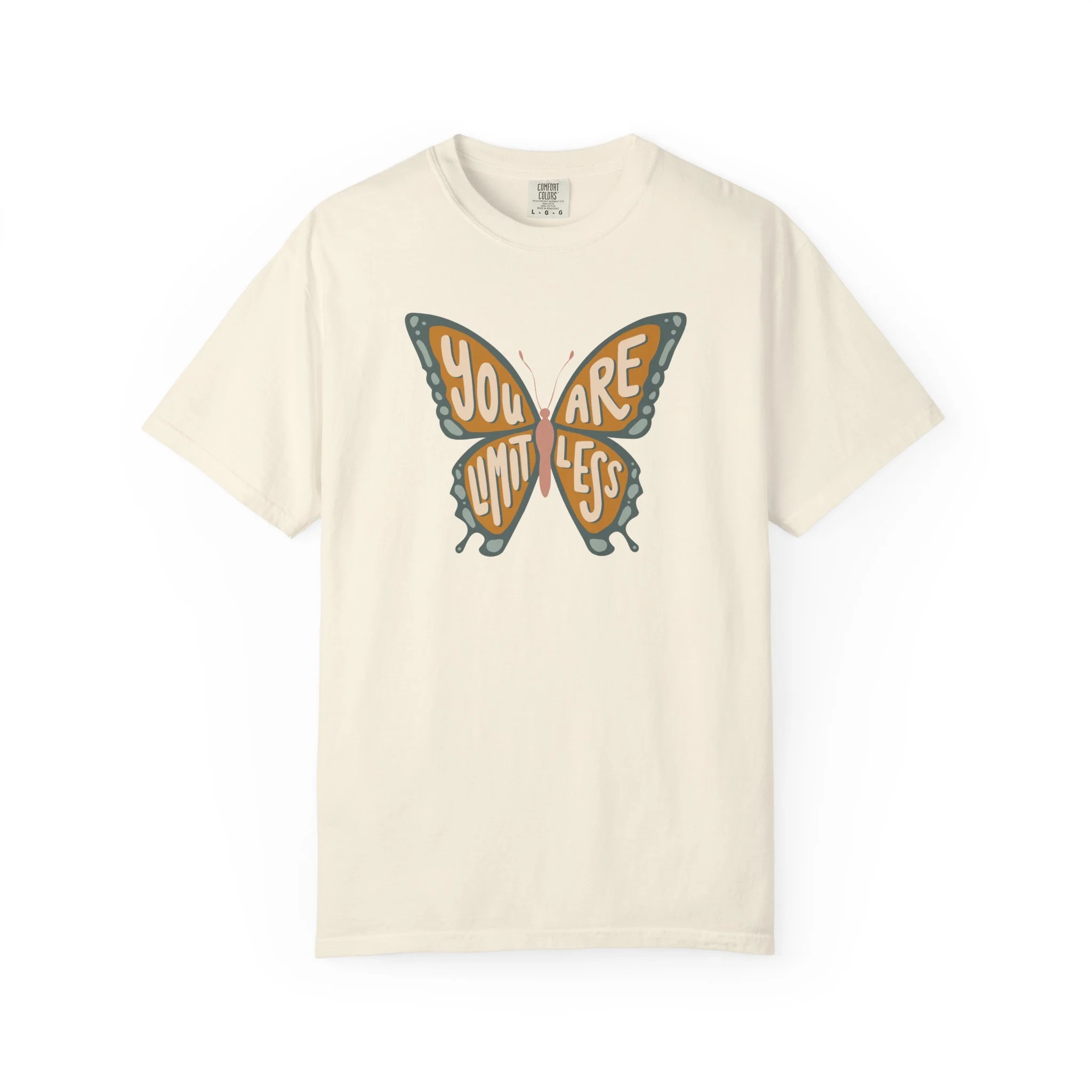 Our "You Are Limitless" Butterfly Tee Graphic Tee is a wearable reminder of growth, transformation, and possibility. Featuring the words “You Are Limitless” within the shape of a butterfly, this design honors the quiet, powerful process of becoming.